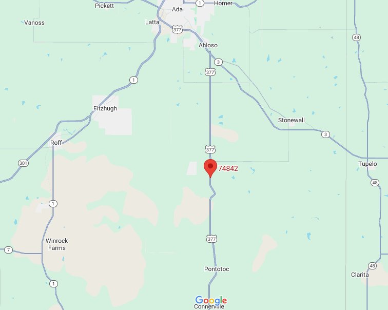 74843 Zip Code - Regional Map & Details