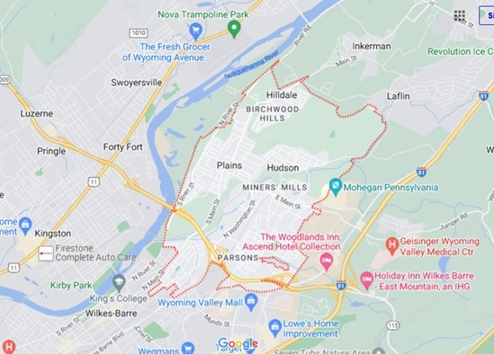 PA Wilkes-Barre + Hilldale, Miners Mill, Parsons, Plains, Plains Twp. [STANDARD]