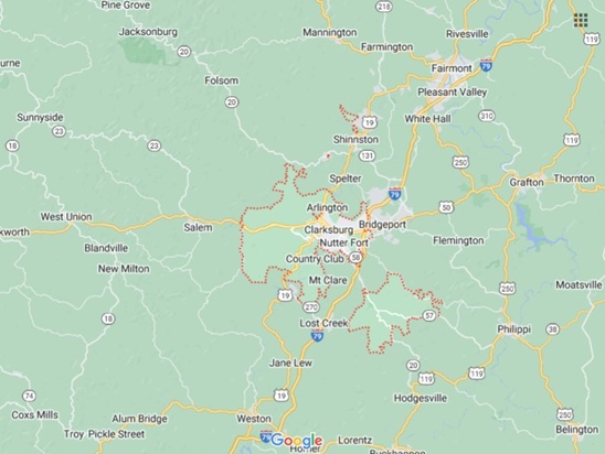 WV Clarksburg + Country Club, Dawmont, Laurel Park, Laurel Valley, Nutter Fort, Stonewood [STANDARD]