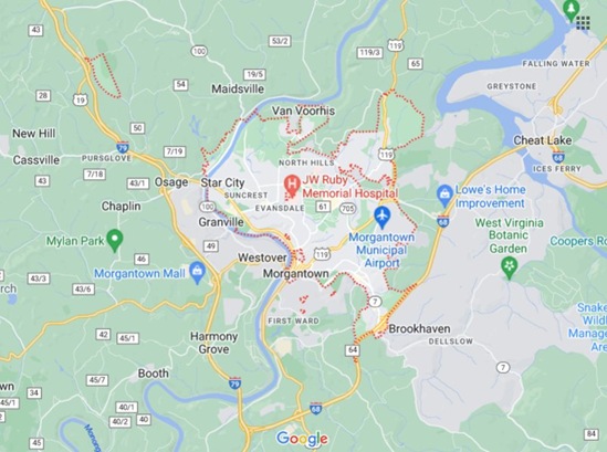 WV Morgantown + Booth, Everettville, Star City [STANDARD]