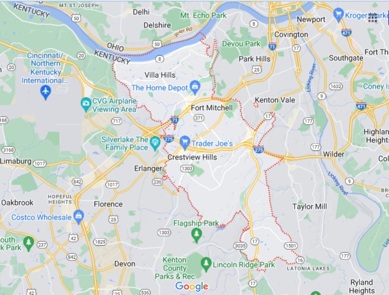 KY Fort Mitchell + Bromley, Covington, Crescent Park, Crescent Springs, Crestview Hills, Edgewood, Erlanger, Fort Mitchell, Fort Wright, Lakeside Park, South Fort Mitchell, Villa Hills [STANDARD]