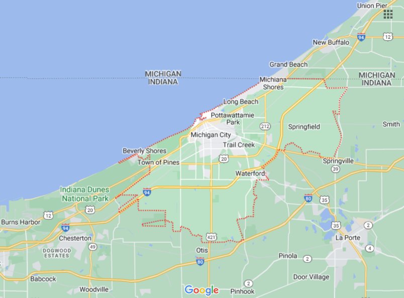 IN Michigan City + Long Beach, Michiana Shores, Pines, Potawattamie Park, Trail Creek [STANDARD]
