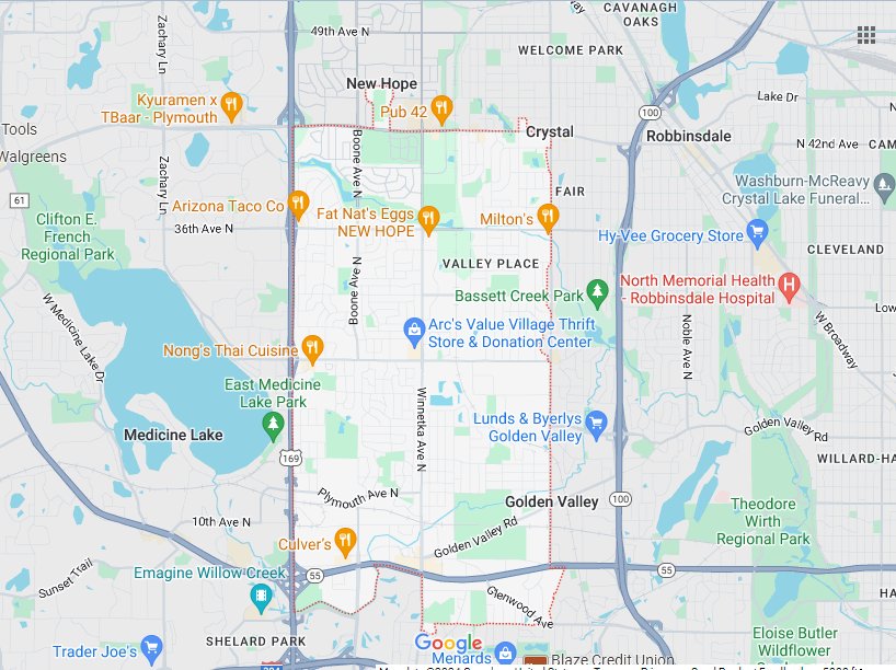MN Minneapolis + Crystal, Golden Valley, New Hope [STANDARD]