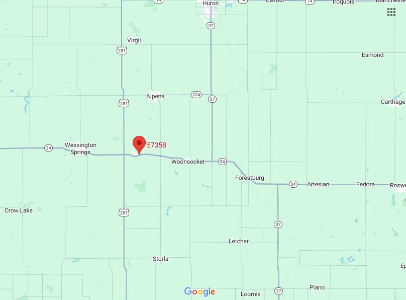 57358 Zip Code - Regional Map & Details